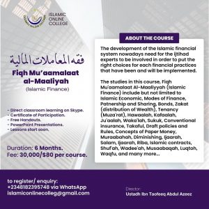 Islamic Online College (IOC) introduces: Fiqh Mu’aamalaat al-Maaliyyah (Islamic Finance), and Uloomu-l-Qura’an (Sciences of the Qur’an) Courses… Contact +2348182395748 to get registered. Lessons start soon..